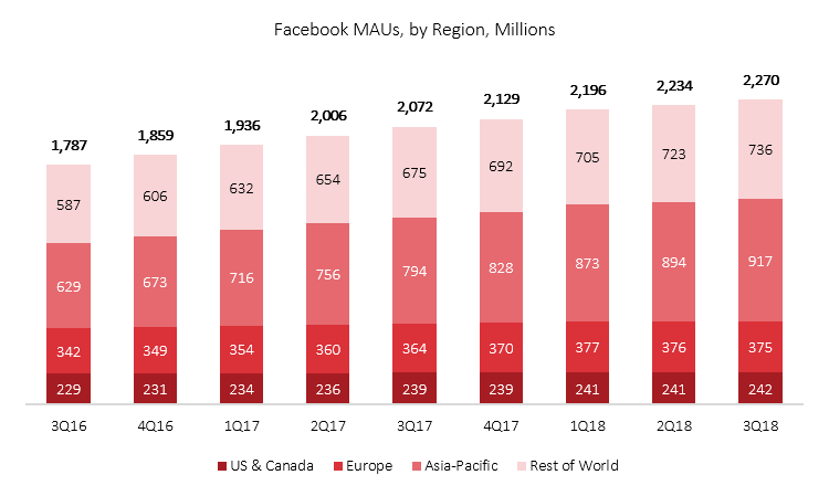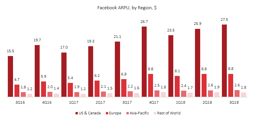 I think it would be fair to state that Facebook.com is unlikely to grow its MAUs much further, and the opportunities to monetize the geographies where it is still acquiring new users are likely to lag behind those of North America and Europe. The lagging monetization of the new content formats, namely Stories, represents another growing problem for the company.